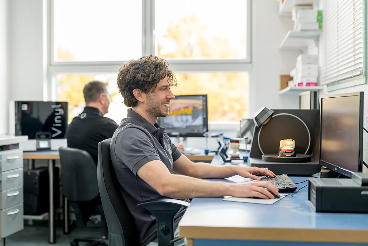 Doch die Technik allein macht nicht den Unterschied. Unsere erfahrenen Zahntechniker nutzen ihr handwerkliches Können, um jedem Stück den letzten Schliff zu geben.